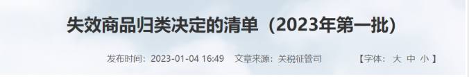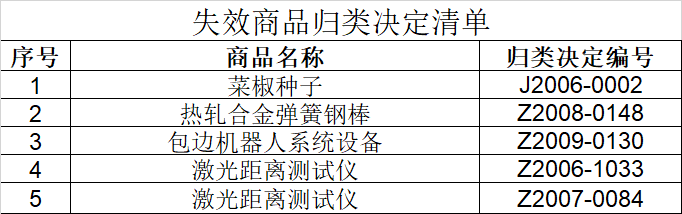 失效商品归类决定的清单(2023年第一批)